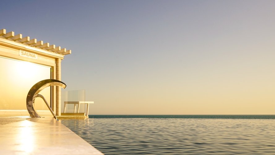 Бассейн на пляже с сауной, детской чашей и баром