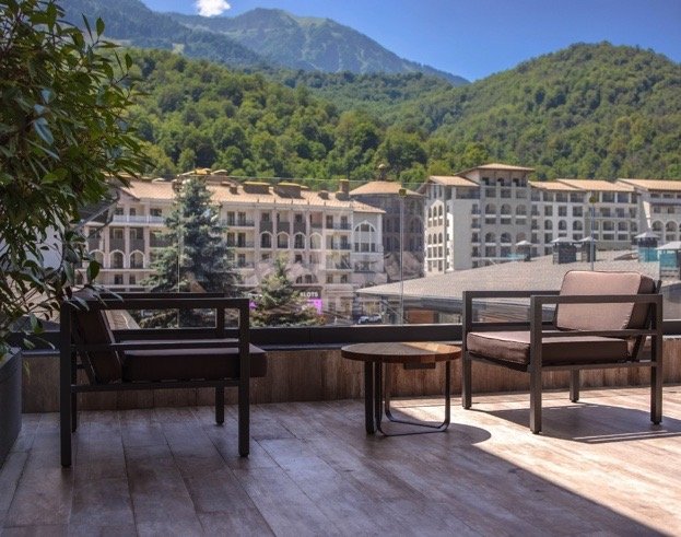 Комплекс расположен в самом центре курорта Красная поляна - напротив отеля Мариотт