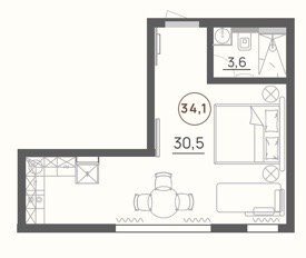 Площадь от 34.1 м2
